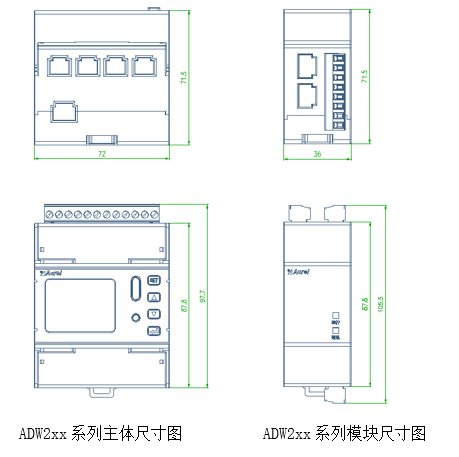 ADW2xx系列導(dǎo)軌式多回路電力儀表方便用戶進(jìn)行用電監(jiān)測(cè)、集抄和管理??伸`活安裝于配電箱內(nèi),實(shí)現(xiàn)對(duì)不同區(qū)域和不同負(fù)荷的分項(xiàng)電能計(jì)量,統(tǒng)計(jì)和分析。訂貨范例: