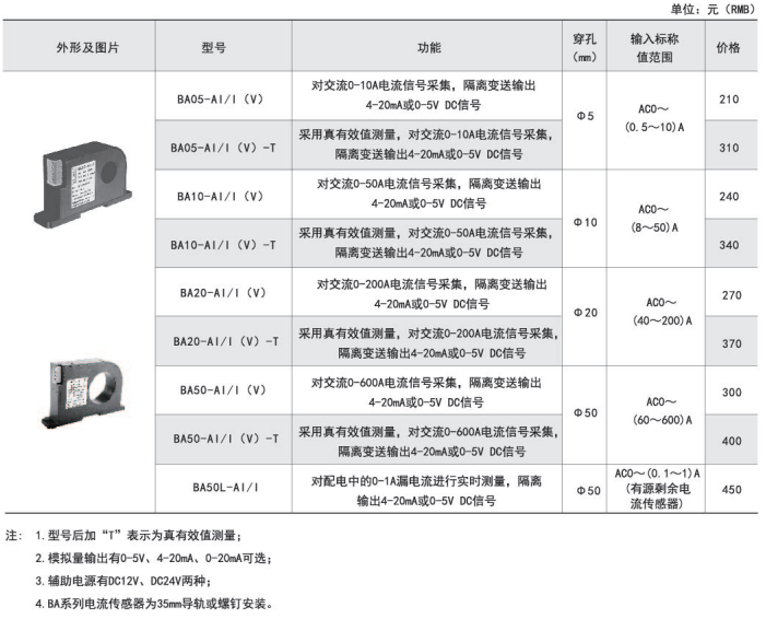 首頁 > 產(chǎn)品中心 > 互感器/變送器 > BA系列交流電流傳感器