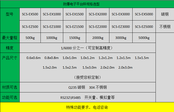 防爆電子平臺秤專為具有爆炸和爆燃危險的產(chǎn)品生產(chǎn)場所開發(fā)研制的微電腦控制電子精密稱量設(shè)備,可在兵器行業(yè),醫(yī)藥和化工品制造裝配、彈體裝藥、裝配檢測稱量,航空航天彈箭飛行器具研制以及民用爆破器材生產(chǎn)中得到廣泛應(yīng)用。