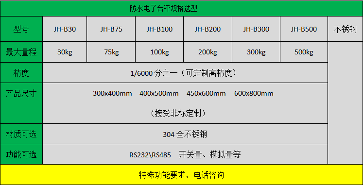 5、防水等級IP67。秤架使用304優(yōu)質不銹鋼,并采用了二橫四縱的架構,超高強度與超高硬度,防水防腐,保證使用的壽命