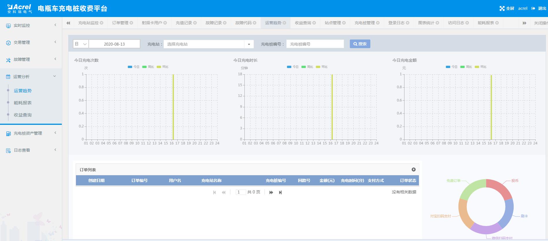 充電價格策略管理,預(yù)收費(fèi)管理,賬單管理,營收和財務(wù)相關(guān)報表。