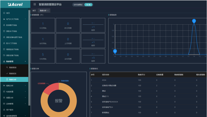 安科瑞智慧消防綜合管理云平臺基于物聯(lián)網(wǎng)、大數(shù)據(jù)、云計算等現(xiàn)代信息技術(shù),將分散的火災(zāi)自動報警設(shè)備、電氣火災(zāi)監(jiān)控設(shè)備、智慧煙感探測器、智慧消防用水等設(shè)備連接形成網(wǎng)絡(luò),并對這些設(shè)備的狀態(tài)進(jìn)行智能化感知、識別、定位,實(shí)時動態(tài)采集消防信息,通過云平臺進(jìn)行數(shù)據(jù)分析、挖掘和趨勢分析,幫助實(shí)現(xiàn)科學(xué)預(yù)警火災(zāi)、網(wǎng)格化管理、落實(shí)多元責(zé)任監(jiān)管等目標(biāo)。填補(bǔ)了原先針對“九小場所”和?;飞a(chǎn)企業(yè)無法有效監(jiān)控的空白,適應(yīng)于所有公建和民建,實(shí)現(xiàn)了無人化值守智慧消防,實(shí)現(xiàn)智慧消防“自動化”、“智能化”、“系統(tǒng)化”、用電管理“精細(xì)化”的實(shí)際需求。